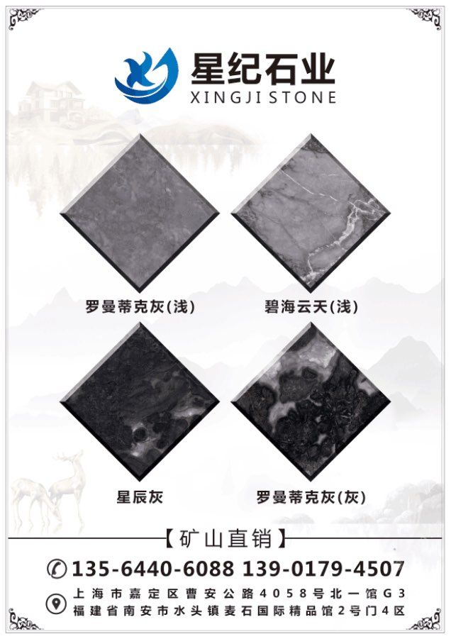 星紀(jì)石業(yè)專業(yè):龍馬礦星耀灰礦山直銷,底色一致,紋理清晰,適合各種工裝及家裝,常年備貨荒料5000噸,大板10萬方量大價優(yōu)。