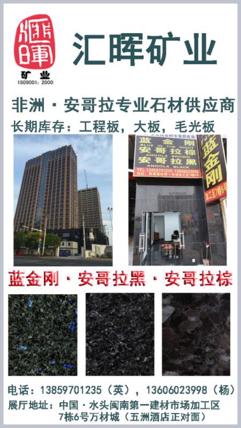本公司主營藍(lán)金剛,安哥拉黑,安哥拉棕,藍(lán)月亮,承接大型工地,展廳地址:建材市場加工區(qū)7棟6號