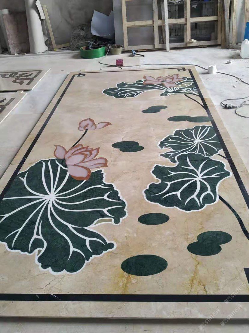本公司 轉(zhuǎn)營大理石(歐亞木紋,藍冰玉) 水刀拼花 電視背景,特價石材。