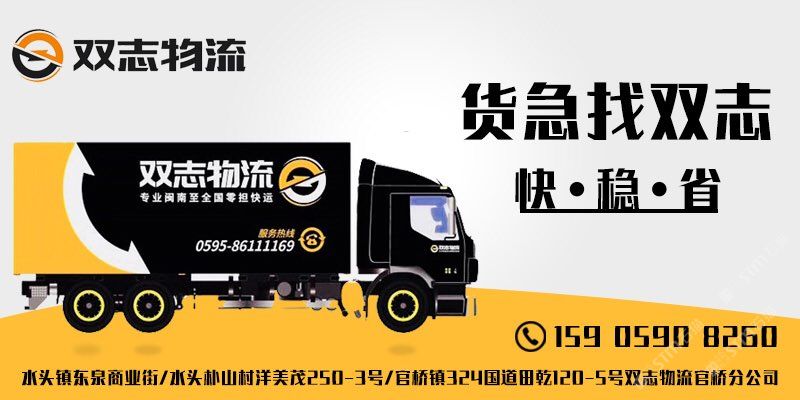 泉州市雙志物流有限公司,成立于2004年專注閩南至全國零擔快運,現已加盟順豐集團順心快運平臺、專業(yè)石材、瓷磚、設備、鋸片大型機械設備等整車零擔貨物運輸。全國統一服務熱線:0595-86111169 手機微信同號:13505987769/15905908260李(女士) #水頭雙志物流專業(yè)閩南至全國零擔快運、倉儲配送!#