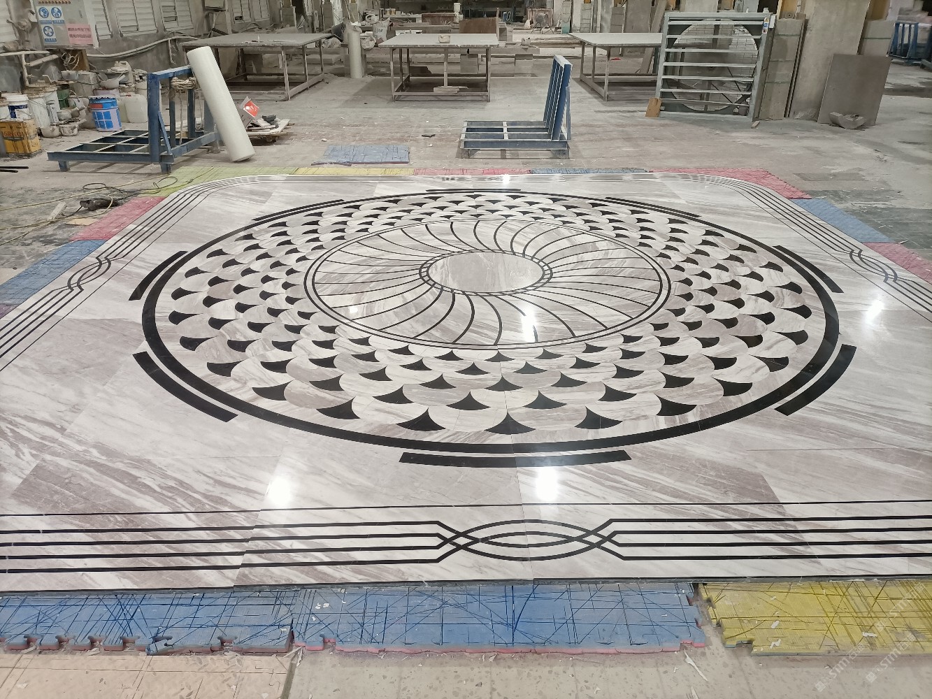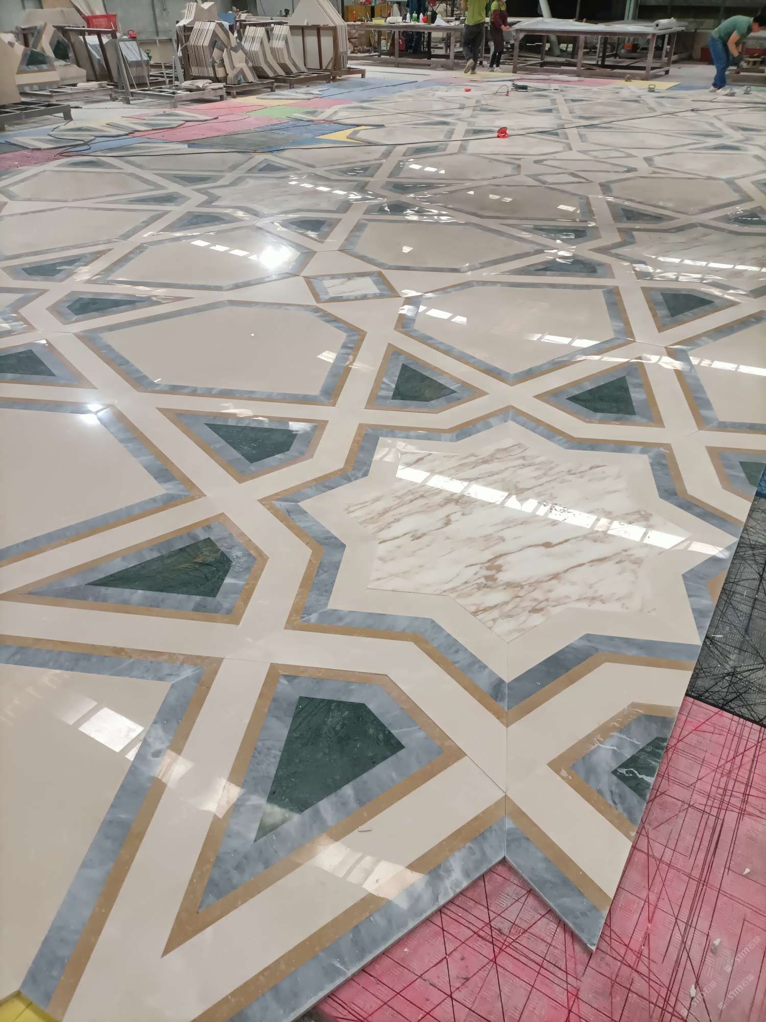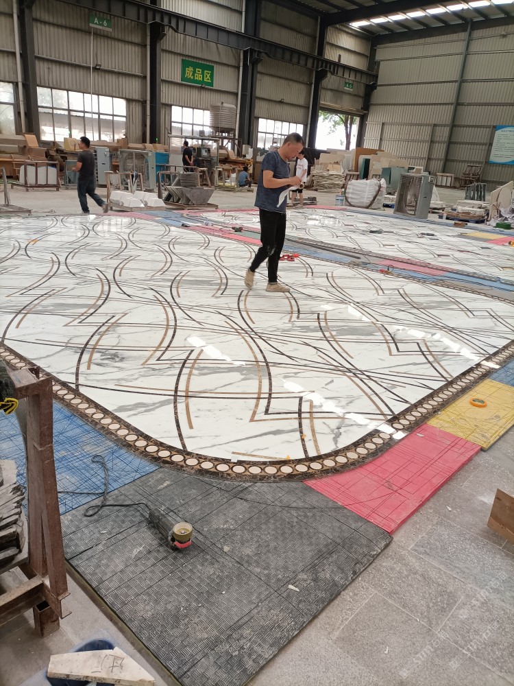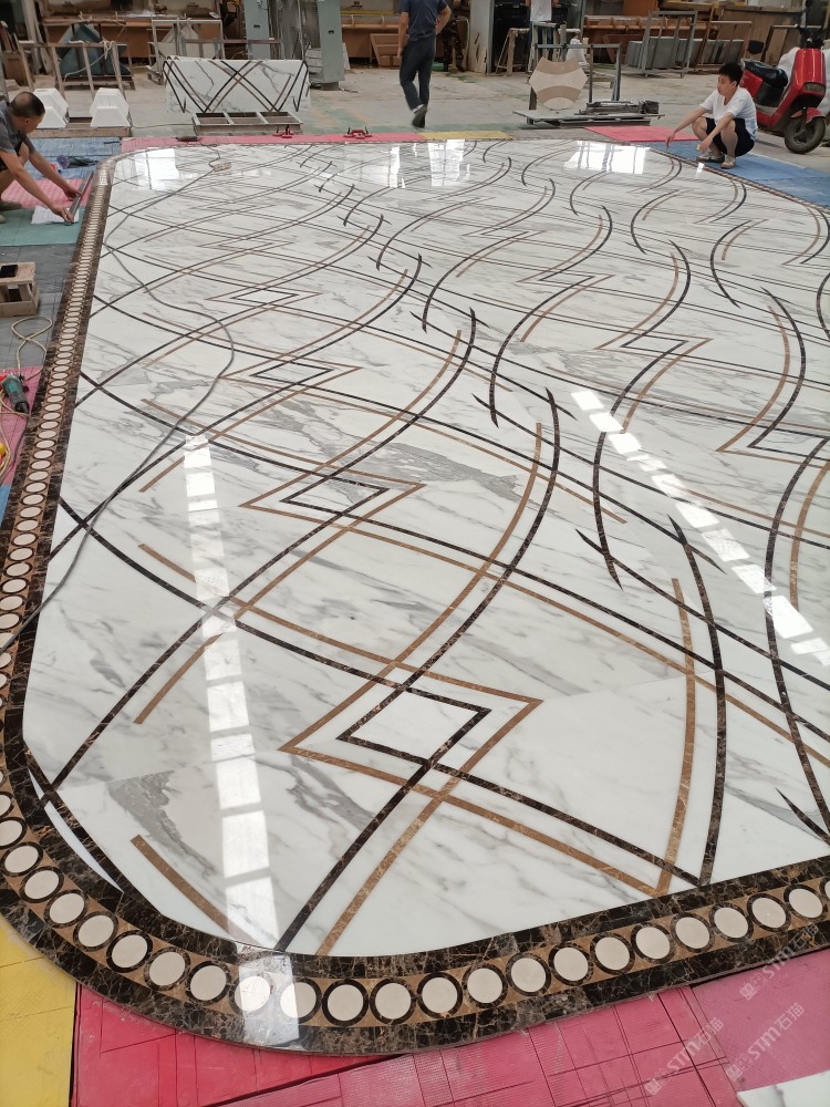 公司水刀拼花生產(chǎn)線(xiàn):擁有6臺(tái)大型水刀設(shè)備,拼花年產(chǎn)量達(dá)10000多平方米。水刀師傅從業(yè)時(shí)間久,誠(chéng)信務(wù)實(shí),質(zhì)量好!所生產(chǎn)的工藝拼圖暢銷(xiāo)全國(guó)及世界各地,是別墅建筑至善至美的選擇。