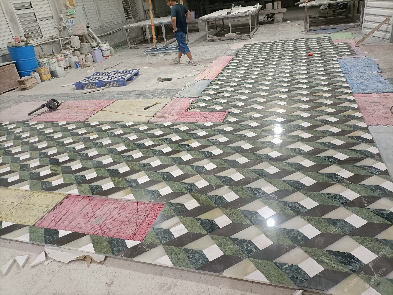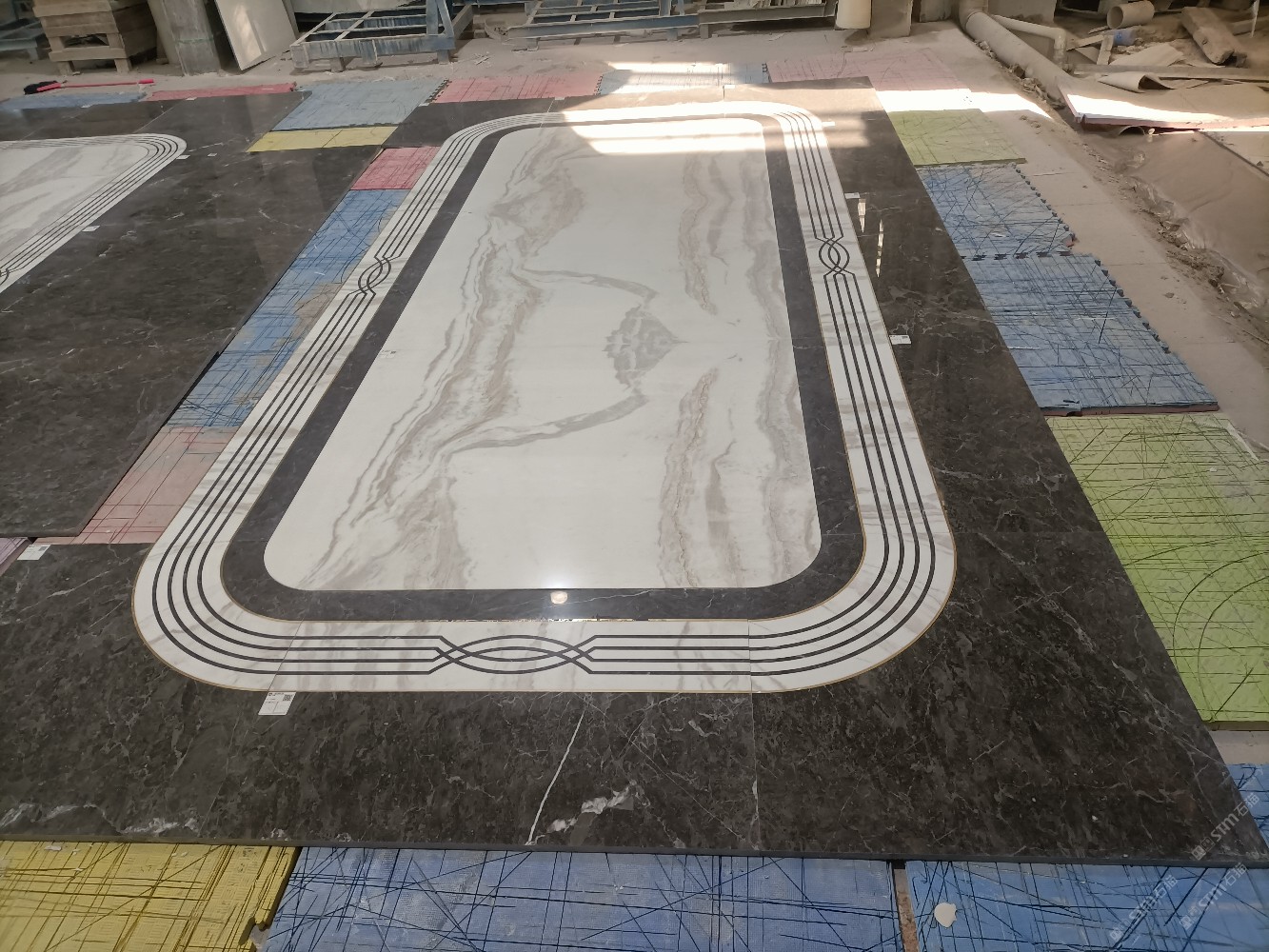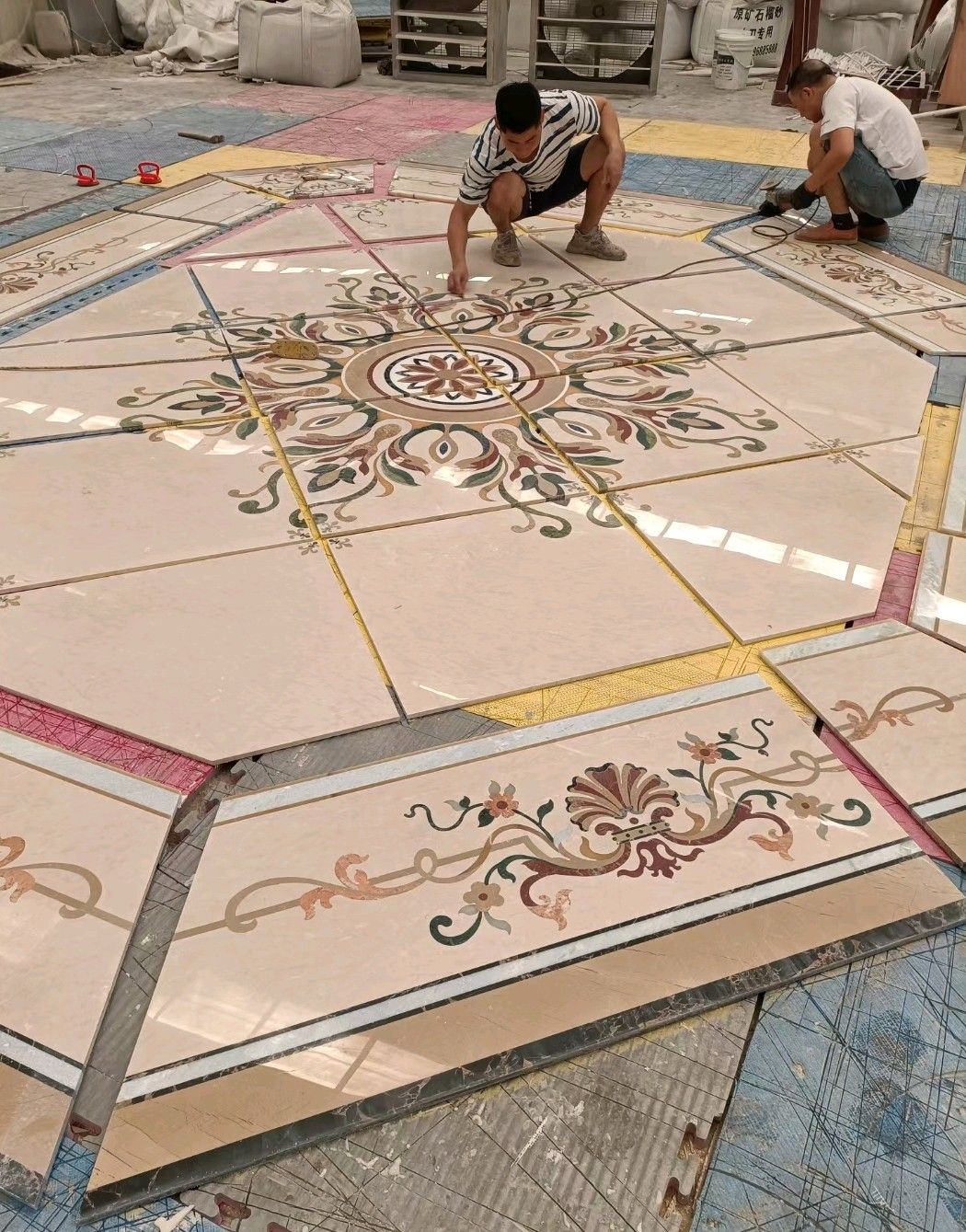 公司水刀拼花生產(chǎn)線(xiàn):擁有6臺(tái)大型水刀設(shè)備,拼花年產(chǎn)量達(dá)10000多平方米。水刀師傅從業(yè)時(shí)間久,誠(chéng)信務(wù)實(shí),質(zhì)量好!所生產(chǎn)的工藝拼圖暢銷(xiāo)全國(guó)及世界各地,是別墅建筑至善至美的選擇。