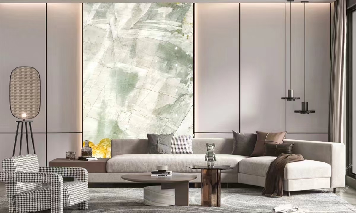 發(fā)布信息: 佰達(dá)奢石「筆墨山河」 編號(hào):BD-333 規(guī)格:3340X1890mm 筆墨隨風(fēng)舞,行事若流云,「筆墨山河」似乎將大自然的鬼斧神工融入人文畫(huà)作,自然裂紋像極隨意的潑墨,又似寫(xiě)意山水貫穿古今,在穆穆文雅與肅然莊重之間奠定的“隱奢”生活基調(diào)