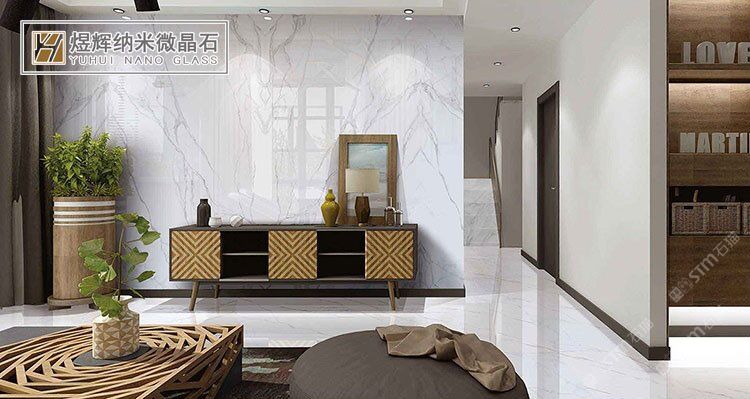 魚(yú)肚白微晶石電視背景墻,巖板熱彎加工,影視墻地臺(tái)