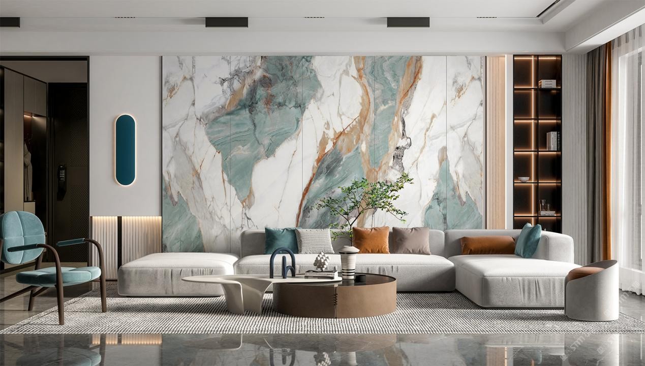 發(fā)布信息: 目前大部分家居空間的舉架高度在2.7m左右,根據(jù)舉架高度,單片巖板的長(zhǎng)度尺寸設(shè)計(jì)在2.6m或者2.7m,符合家居空間的高度要求。一片巖板頂天立地,呈現(xiàn)出大氣利落的視覺(jué)效果。上圖寶格麗背景墻的連紋式設(shè)計(jì)為客廳空間增色不少,整個(gè)色調(diào)彰顯華貴,藝術(shù)氛圍濃郁,典雅端莊的格調(diào),融合了古典與現(xiàn)代色彩之美,紋理大膽、個(gè)性,精致且富于吸引力。