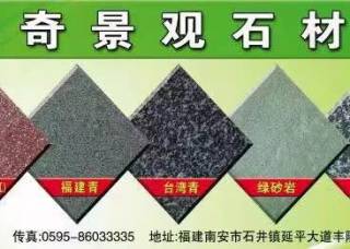 樹奇景觀石材主營產(chǎn)品:福建青,漳浦青G612,臺灣青,森林綠,紅斑巖,綠斑巖,紫斑巖,壽寧紅,紅砂巖,蝴蝶綠,銹石,黃金麻,菊花黃,皇室香檳(老礦),老石板(舊石板)企業(yè)地址:福建泉州南安市石井鎮(zhèn)延平大道豐隆加油站旁