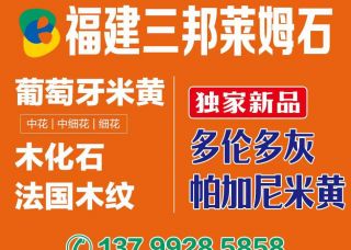 泉州市磊鑫石材貿(mào)易有限公司主營(yíng)產(chǎn)品:葡萄牙米黃,木化石(摩卡礦),木化石(塔星礦),葡萄牙灰,沙漠風(fēng),大花白(大理石),珊瑚紅,木化石,木化石(粗花),葡萄牙藍(lán),葡萄牙灰1,波卡蘭,新奧特曼灰,煙粉(葡萄牙礦),煙粉企業(yè)地址:福建泉州南安市水頭立方大板市場(chǎng)三通道三區(qū)五區(qū)